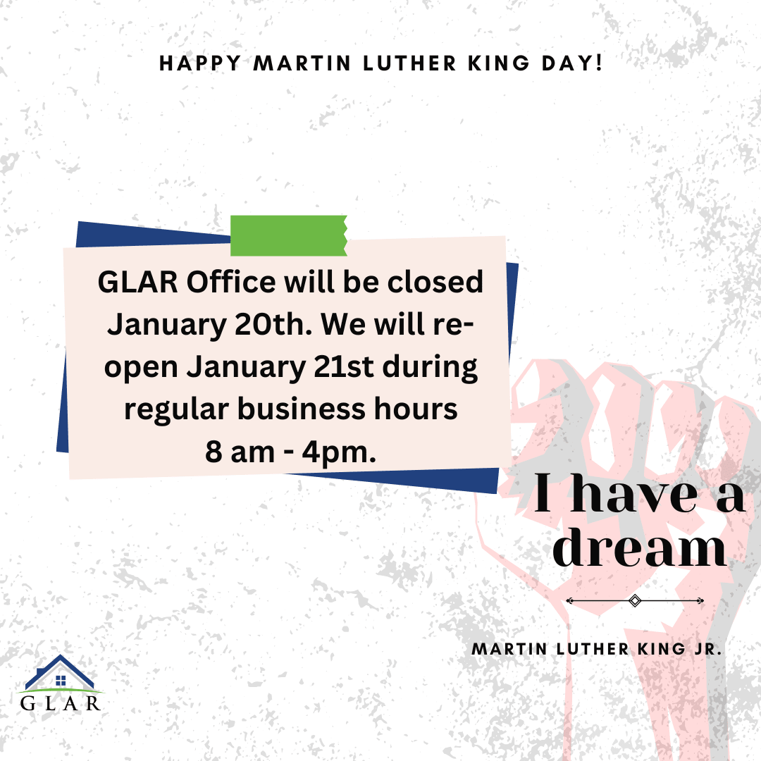 GLAR Office will be closed on January 20th, 2025. We will re-open on January 21st during normal business hours ( 8 am - 4 pm)